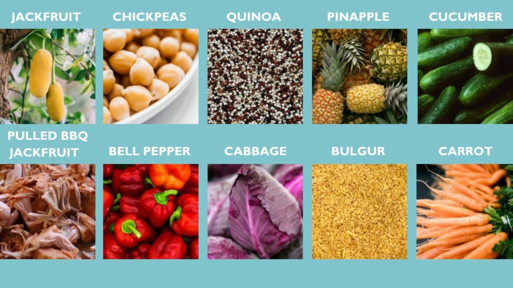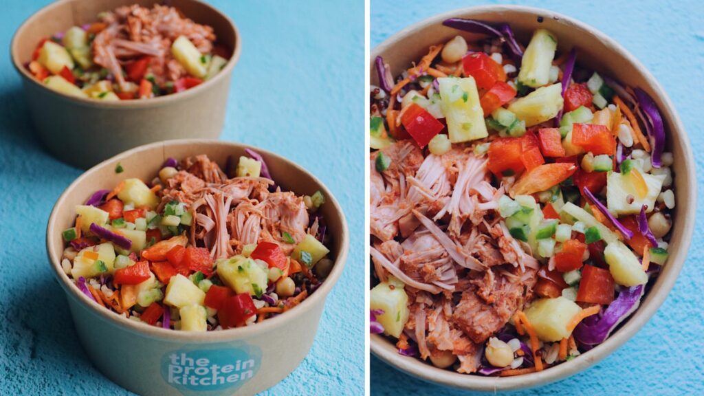 Our new vegan bowl is made with bbq marinated pulled jackfruit in our own freshly made bbq sauce, on a delicious base of wholegrain bulgur, quinoa, chickpeas, carrots and cabbage tossed in our own bbq dressing and topped with a colorful mix of fresh pineapple, peppers and cucumber. Tropical, fresh and with a taste that makes you think of summer. You simply have to try it.