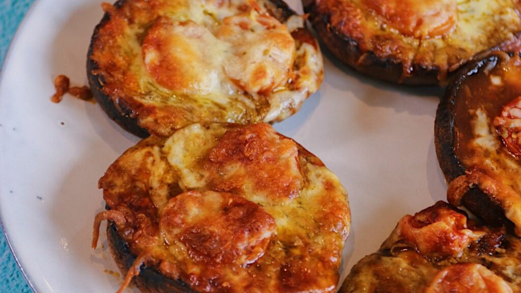 WHO DOESN’T LOVE PIZZA? WE DO! So here is a fun, and healthier way to have a pizza snack with Portobello as a main ingredient. More veggie, lots of taste, less calories. And you can top your Portobello Pizzas with your favourite toppings. If you own a BBQ Grill, try making them on a grill too. It’s a great appetizer, a side dish or just as a snack.